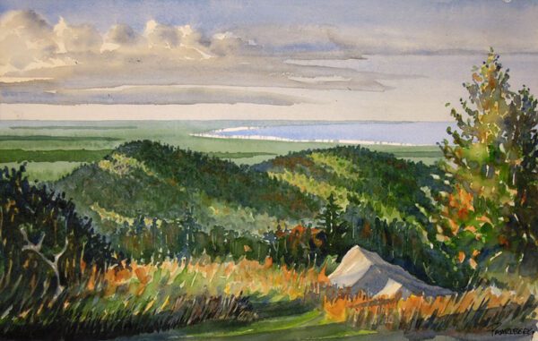 The final installation of York Hospital’s 2023 cafeteria and online art gallery series is on view now. We are pleased to present watercolors and works on paper by Kittery Point resident Bill Paarlberg in the York Hospital cafeteria, open Monday – Friday, 7:30 a.m. – 2:30 p.m. The exhibition may also be viewed in our online gallery, open 24/7 with internet access. Pictured above is Agamenticus View to 2nd and 3rd Hills.